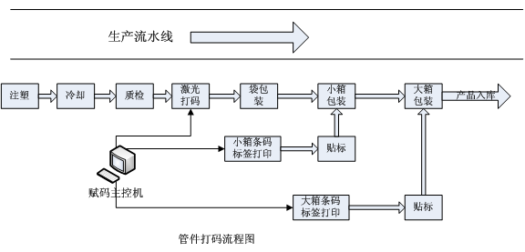 2. 管件通過激光打碼的方式,每個(gè)管件上打印一個(gè)防偽防竄貨碼。管材通過油墨噴碼或者激光打碼的方式,每個(gè)管材上打印三個(gè)防偽防竄貨碼。