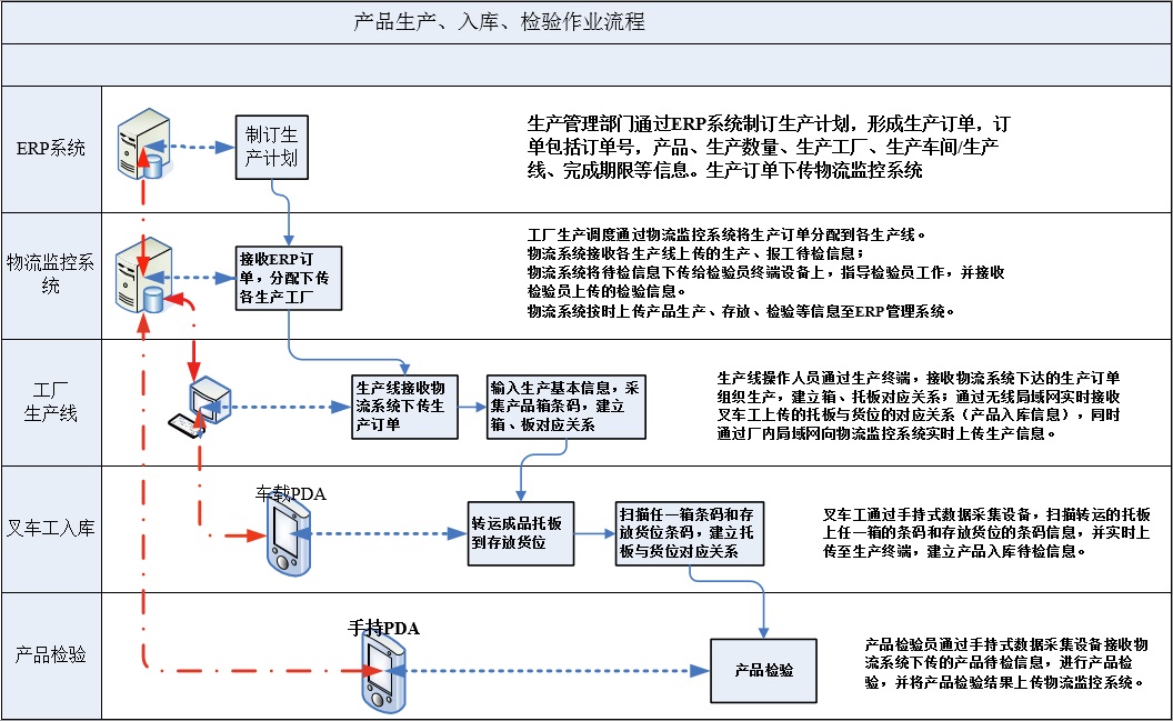 1. 利用高解析噴碼機(jī)或標(biāo)簽打印機(jī)在每個(gè)紙箱指定位置標(biāo)識(shí)條形碼信息,建立箱、托盤關(guān)聯(lián)對應(yīng)關(guān)系,并與系統(tǒng)后臺(tái)數(shù)據(jù)庫進(jìn)行實(shí)時(shí)信息交互。